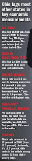 Consider job growth: Ohio lost 22,400 manufacturing jobs from January 2006 through January 2007 and lost 16,600 jobs overall during that period. Only Michigan fared worse.